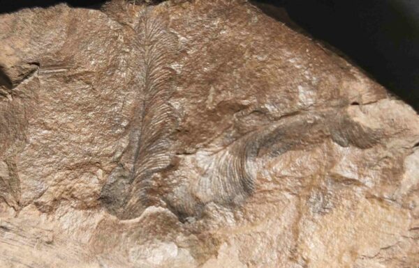 Odontopteris osmundaeformis is a plant relatet to todays ferns. These plants started to appear in the Carbonian just bevor the Permian. This one here is from the lower Permian and would be about 280 Mio years old. At that time North America and Europe-Asia is one continent. Therefore many fossils from Europe occure also in Northamerica. For the past two decades the scientists of Texas and Thuringia carried out joint excavations in the Permian of Thuringia and Texas. Many new finds where discovered.