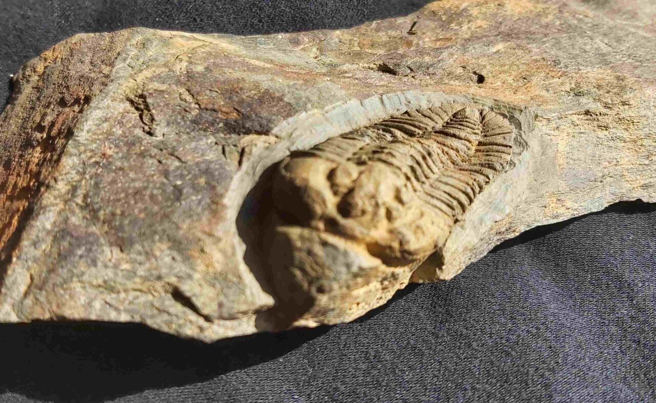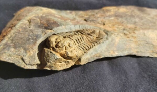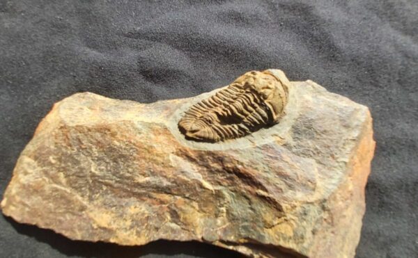 The specimen here is 4.1 cm or 1.6 inches long. There are no alternations on the fossil. The Trilobite is a more rare find at St. Aubin Des Chateaux.