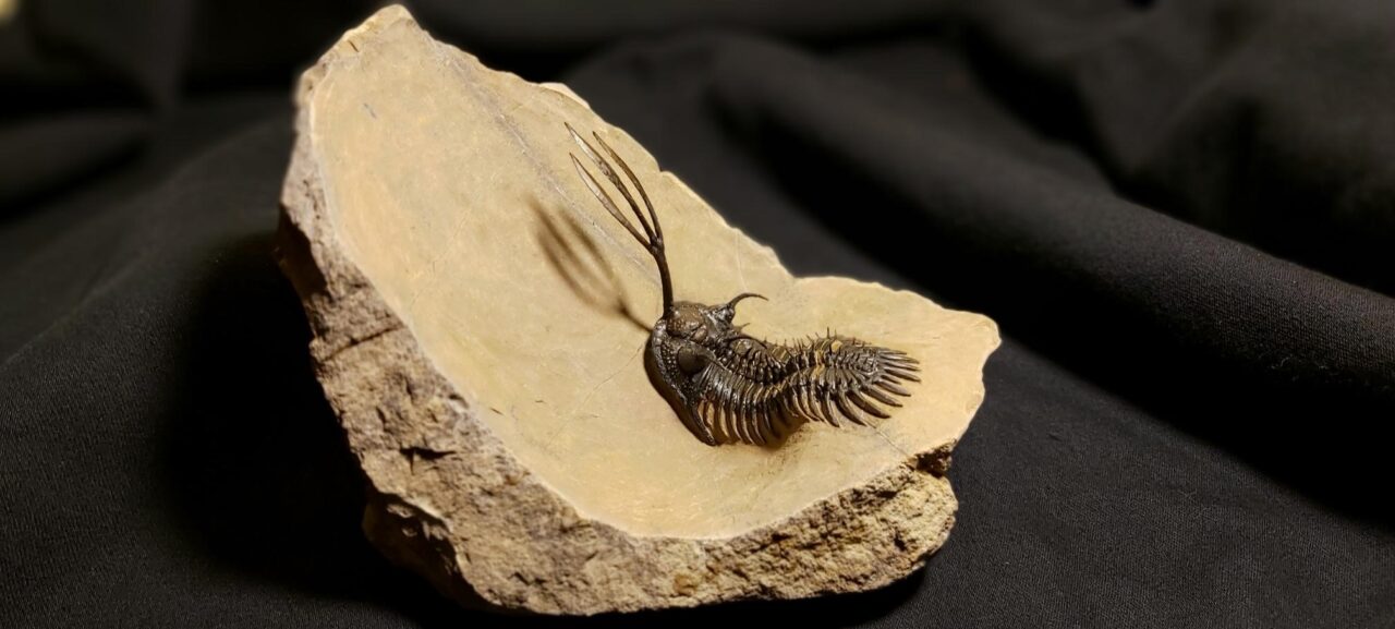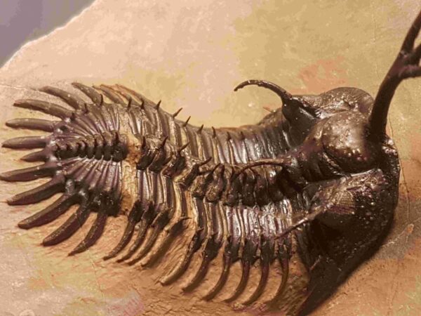 Moroccan Trilobites like this Walliserops trifurcatus Trilobite from Morocco are often master pieces of preparation art. Mining of fossil and their preparation is a great source of income for the people, that live in the oasis of the Sahara desert. Whole villages depend on